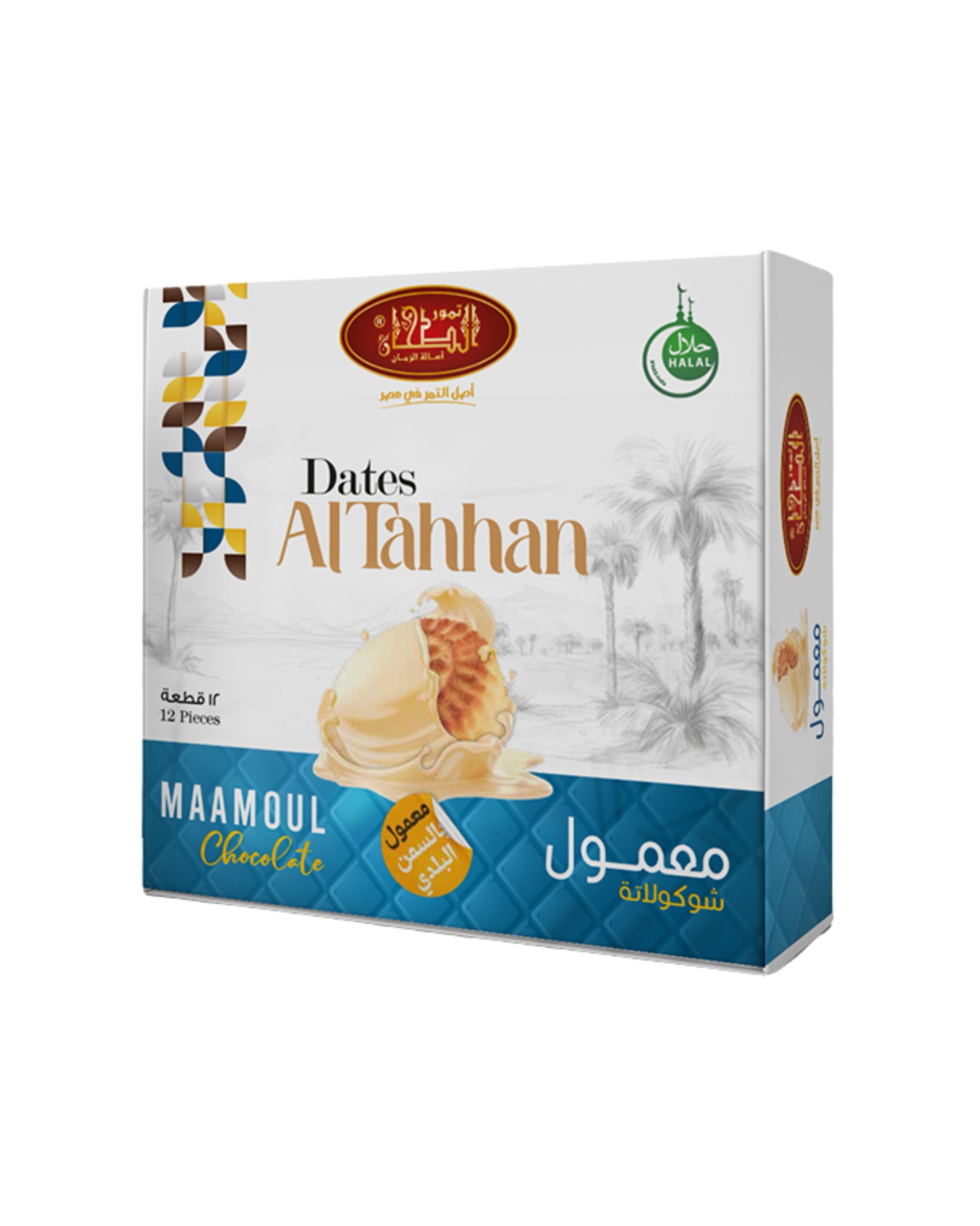 Objevte lahodné datlové pečivo Maamoul od prémiovní značky AlTahhan. Jemné máslové těsto plněné kvalitní datlovou pastou a obalené krémovou bílou čokoládou tvoří dokonale vyváženou chuť, která potěší milovníky sladkostí i datlí. Každý kus je pečlivě připraven tak, aby nabídl měkkou strukturu, autentickou chuť datlí a jemnou sladkost bílé čokolády.