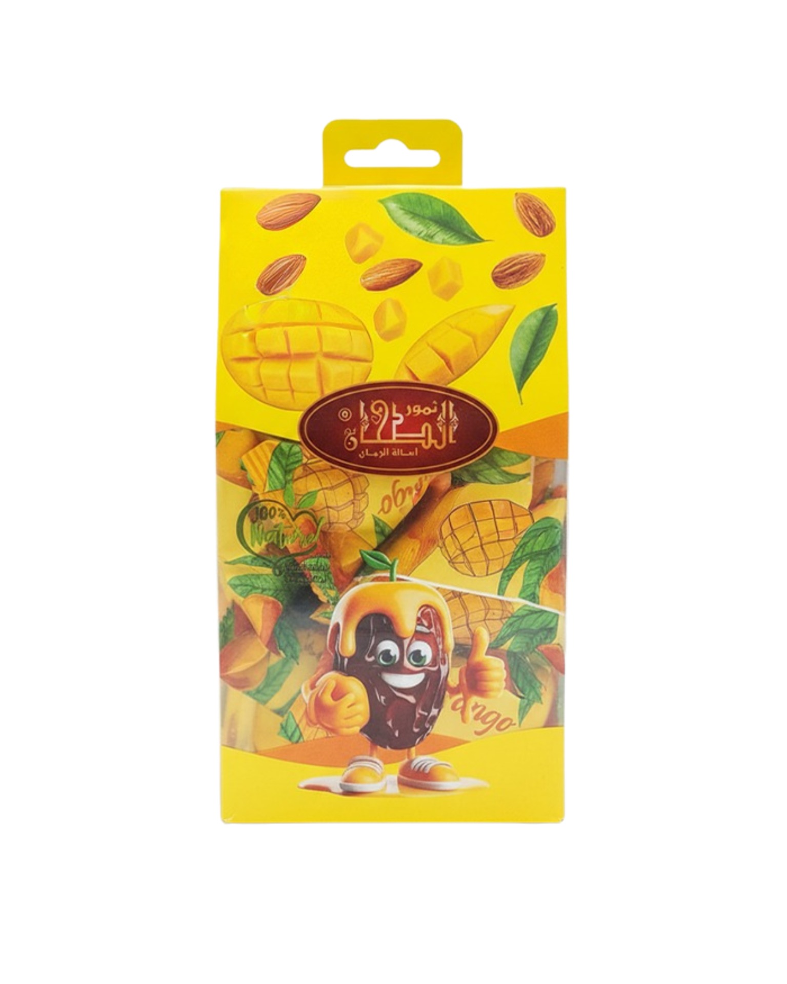 Vyzkoušejte jedinečnou kombinaci přirozené sladkosti kvalitních datlí plněných celou mandlí a obalených v jemné ovocné čokoládě s příchutí manga nebo tropického mixu plodů. Tento delikátní produkt značky AlTahhan spojuje tradiční chuť datlí s exotickými ovocnými tóny a křupavou strukturou mandle uvnitř.