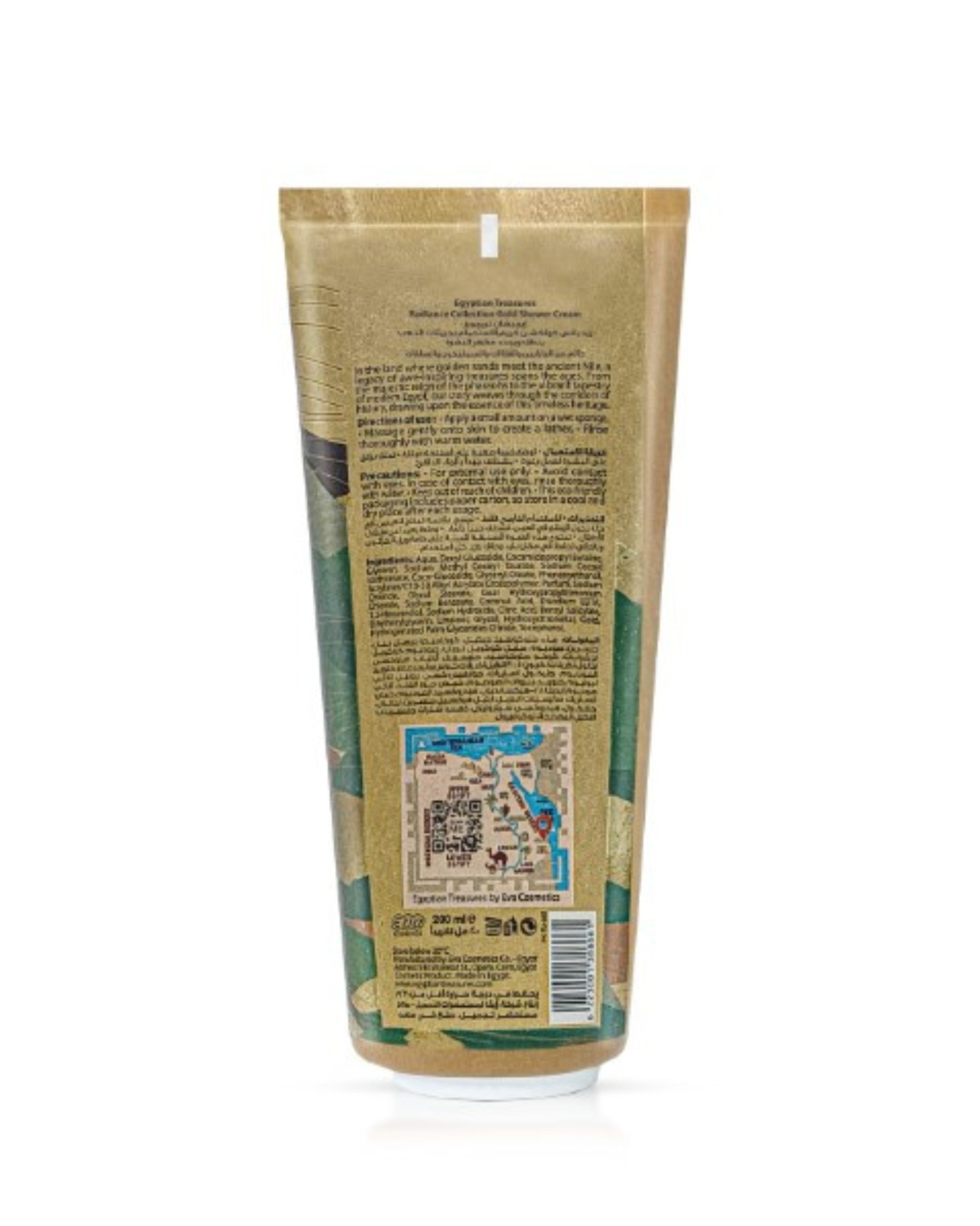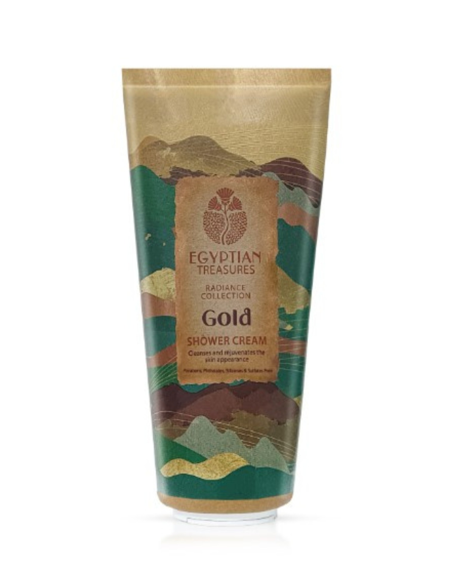 Egyptian Treasures Gold Shower Cream je výjimečný sprchový krém obohacený o revitalizační částice zlata a výživné přírodní extrakty. Je navržený tak, aby pokožku šetrně čistil, intenzivně hydratoval a zanechal ji dokonale hladkou a jemně provoněnou.