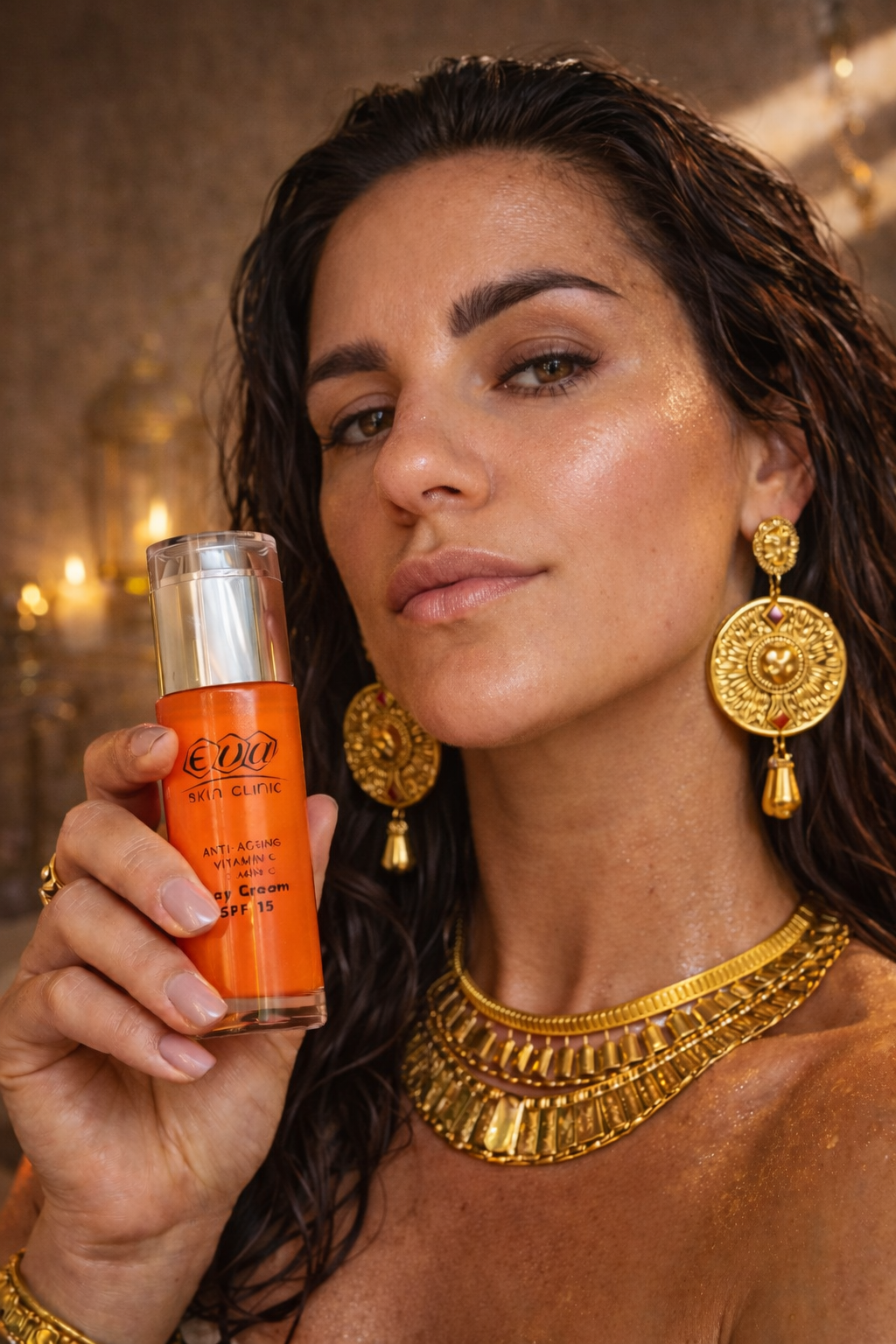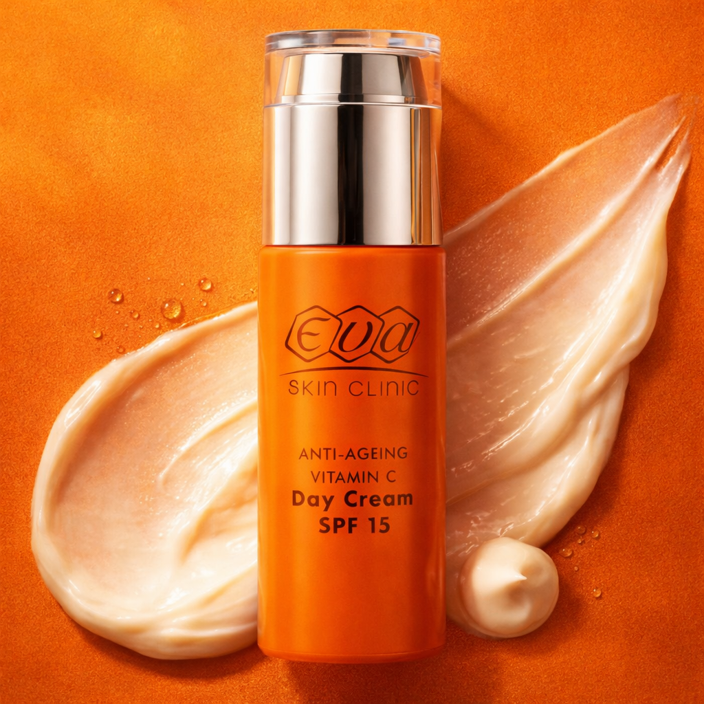 Eva Skin Clinic Vitamin C Day Cream SPF 15 je ideální multiaktivní krém pro každodenní použití – poskytuje rozjasnění, hydrataci, ochranu před UV a první obranu proti stárnutí pleti. Lehké složení zanechává pleť svěží a připravenou na další péči či make-up.